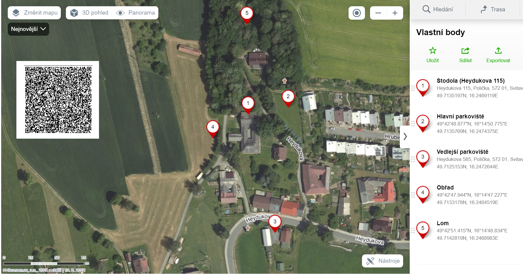Bod č. 2 - Hlavní parkoviště, Bod č. 3 - Vedlejší parkoviště